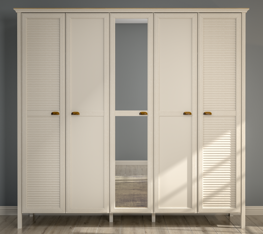 Akkor Dolap, dolap odanıza çağdaş bir dokunuş katarken, düzeni ve estetiği bir araya getiren beş kapılı bir gardıroptur. Ürünün genel görünümü, modern ve minimalist bir estetiği yansıtan sade ve zarif hatlara sahiptir. Dolabın gövdesi ve kapakları, pürüzsüz ve mat bir yüzeye sahip, dayanıklı MDF malzemeden üretilmiştir. Bu malzeme seçimi, uzun ömürlü kullanım ve kolay bakım imkanı sunar.