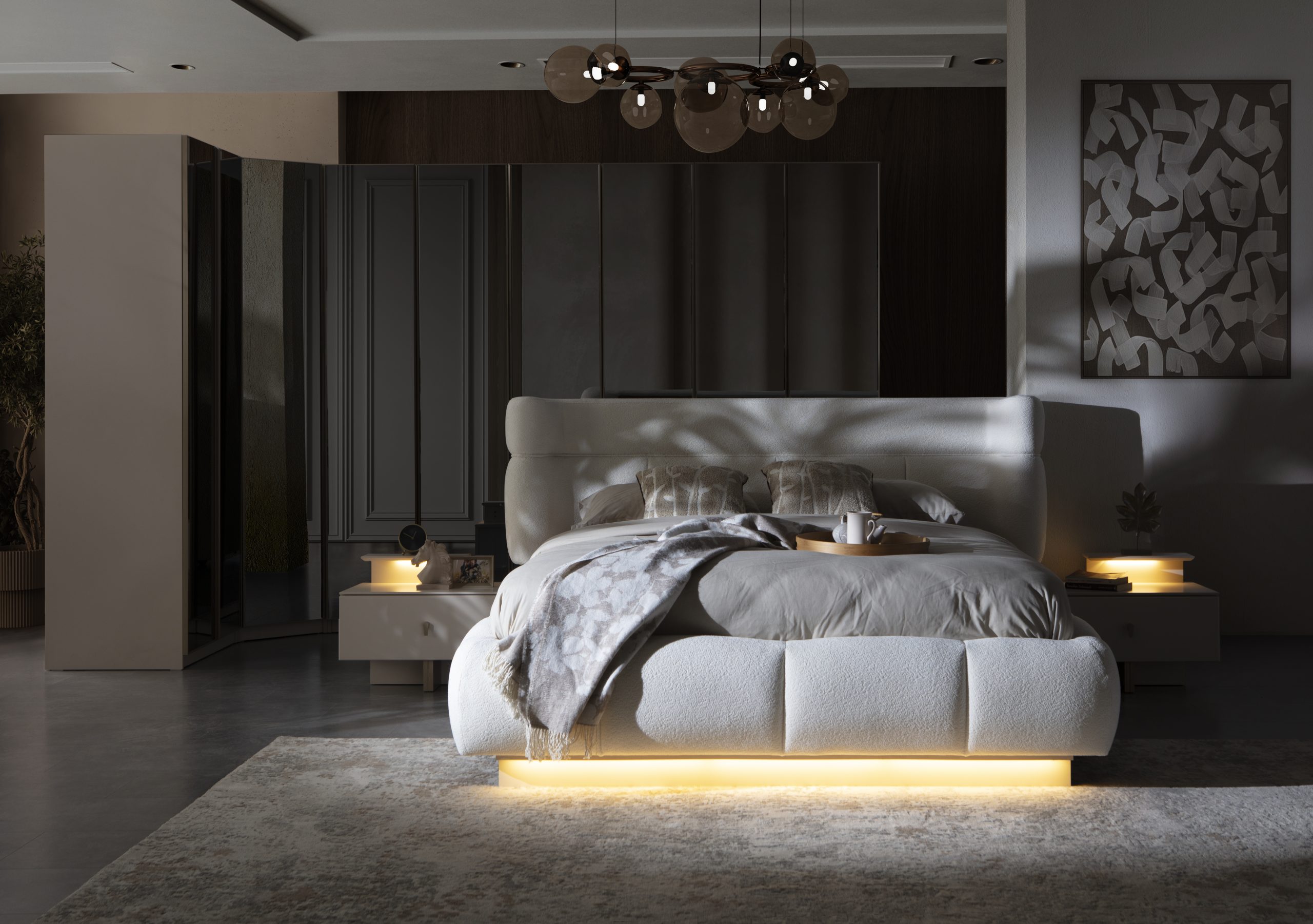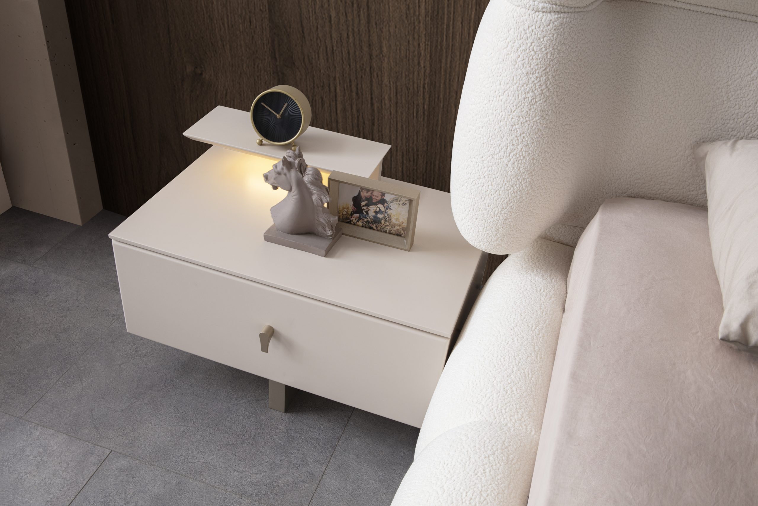 Bonje Yatak Odası Takımı, yatak odası için komple bir çözüm sunuyor. Takımın ana malzemesi MDF olup, dayanıklılığı ve uzun ömürlü kullanımı garanti eder. Takım içeriğinde karyola+başlık, komodin, şifonyer ve dolap bulunmaktadır. Karyola, konforlu bir uyku deneyimi sunarken başlık, şık tasarımıyla odaya estetik bir dokunuş katar. Komodin ve şifonyer, eşyalarınızı düzenli bir şekilde saklamanıza olanak tanırken, dolap geniş iç hacmiyle tüm kıyafetlerinizi ve aksesuarlarınızı rahatça yerleştirmenizi sağlar. Takımın ölçüleri, farklı oda boyutlarına uyum sağlayacak şekilde tasarlanmıştır.