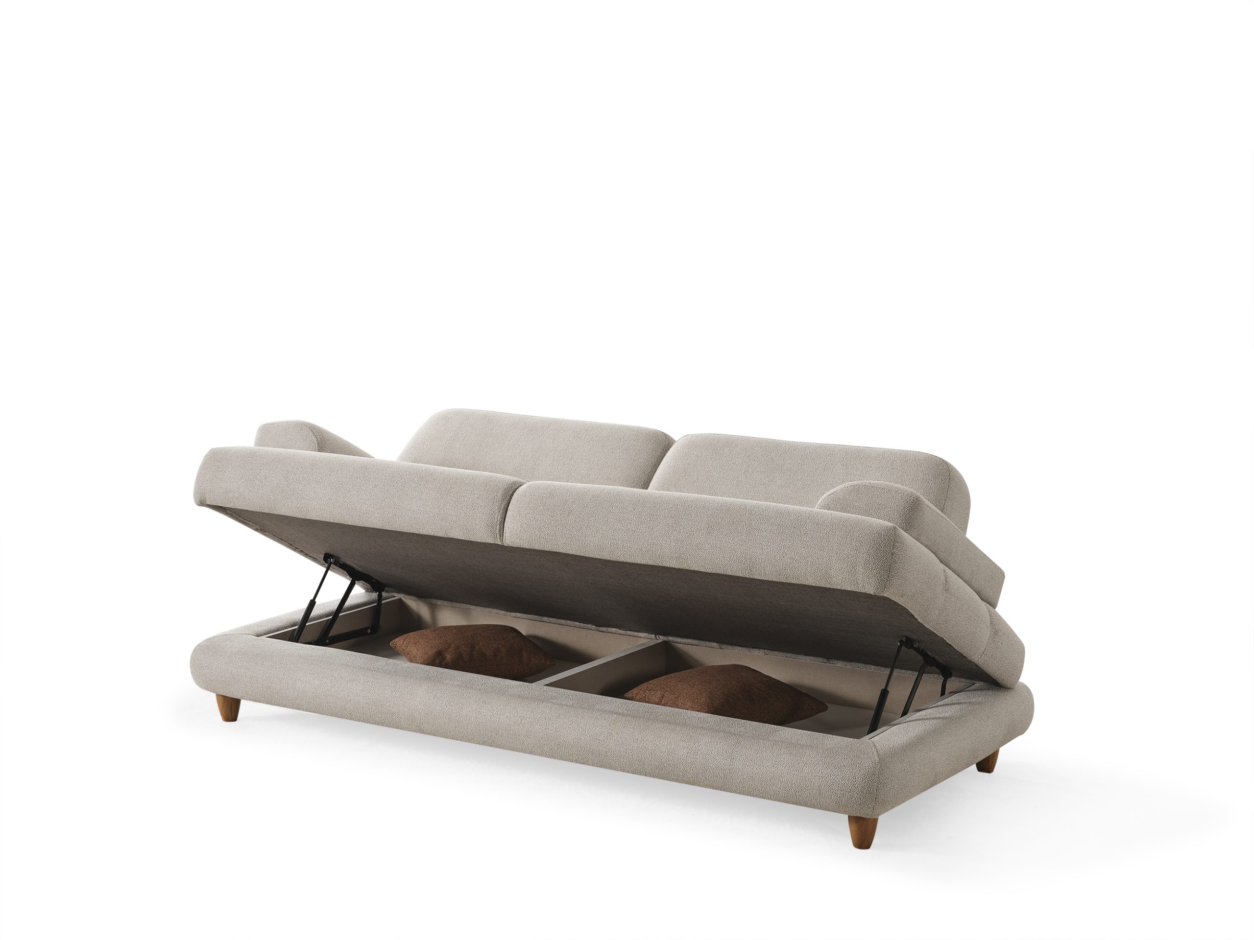 Capella Kanepe, çağdaş yaşam alanları için tasarlanmış, estetik ve fonksiyonelliği bir araya getiren göz alıcı bir parçadır. Modern çizgileri ve sade formuyla dikkat çeken bu 3’lü kanepe, her türlü dekorasyon stiline kolayca uyum sağlar. Açık bej tonlarındaki dokulu silinebilir kumaşı, hem şık bir görünüm sunar hem de günlük kullanımda pratik temizlik imkanı tanır. Geniş ve konforlu oturma minderleri ile sırt yastıkları, uzun süreli oturumlarda bile üst düzey rahatlık vadeder. Özel olarak tasarlanmış, hafifçe yuvarlatılmış ve katmanlı bir görünüme sahip kolçakları, kanepenin modern estetiğine özgün bir dokunuş katarken, ergonomik bir destek de sunar. Ahşap görünümlü, konik formdaki zarif ayaklar, Capella Kanepe’ye yerden yüksek ve ferah bir duruş kazandırarak, mekanın daha geniş algılanmasına yardımcı olur. Oturma Grupları ve salonlar için ideal olan bu kanepe, misafir ağırlamadan günlük dinlenmeye kadar her ihtiyaca cevap veren şık ve dayanıklı bir çözümdür.