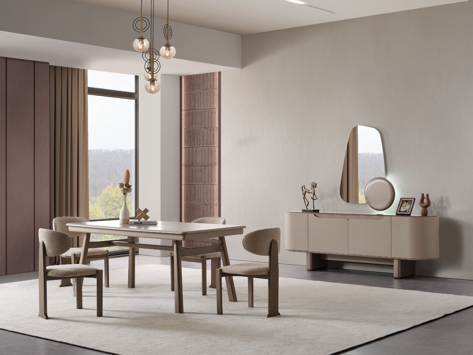Ekol Yemek Odası Takımı, MDF (Orta Yoğunlukta Lif Levha) malzemeden üretilmiş, şık ve işlevsel bir yemek odası mobilya setidir. Dayanıklılığı, estetik tasarımı ve kolay işlenebilirliği ile öne çıkar. MDF’nin pürüzsüz yüzeyi, kolay temizlenebilirlik ve uzun ömürlü kullanım sağlar. Takım, genellikle yemek masası, sandalyeler ve bazen vitrin veya konsol gibi ek parçalardan oluşur. MDF’nin esnek yapısı sayesinde farklı renk, desen ve kaplama seçenekleriyle kişiselleştirilebilir, böylece modern, minimalist veya klasik tarzlara uyum sağlar. Ergonomik sandalye tasarımları ve sağlam masa yapısı konforlu bir kullanım sunarken, şık detaylar yemek odalarına zarafet katar.