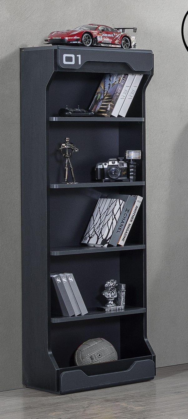 Gamer Kitaplık, genç odalarının dinamik atmosferine uygun olarak tasarlanmış, modern ve estetik bir depolama çözümüdür. Koyu antrasit rengi ve minimalist çizgileriyle dikkat çeken bu kitaplık, özellikle teknoloji ve oyun temalı odalar için ideal bir tamamlayıcıdır. Üst kısmında yer alan belirgin “01” detayı, ürünün ‘Gamer’ ismine vurgu yaparak gençlerin beğenisini kazanır ve tasarıma özgün bir karakter katar.