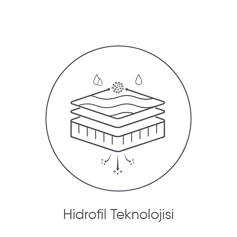 Hidrofil TeknolojisiHidrofilite özelliğine sahip kumaş, nem yönetimi sağlar ve nemi daha geniş bir yüzeye yayarak çabuk kuruma özelliği gösterir. Hidrofilik kumaş, kötü kokuların oluşumunu önlemeye yardımcı olur. Su emme özelliği sayesinde, hidrofilik kumaş ciltte daha az rahatsızlık hissi yaratır ve daha konforlu bir deneyim sunar.