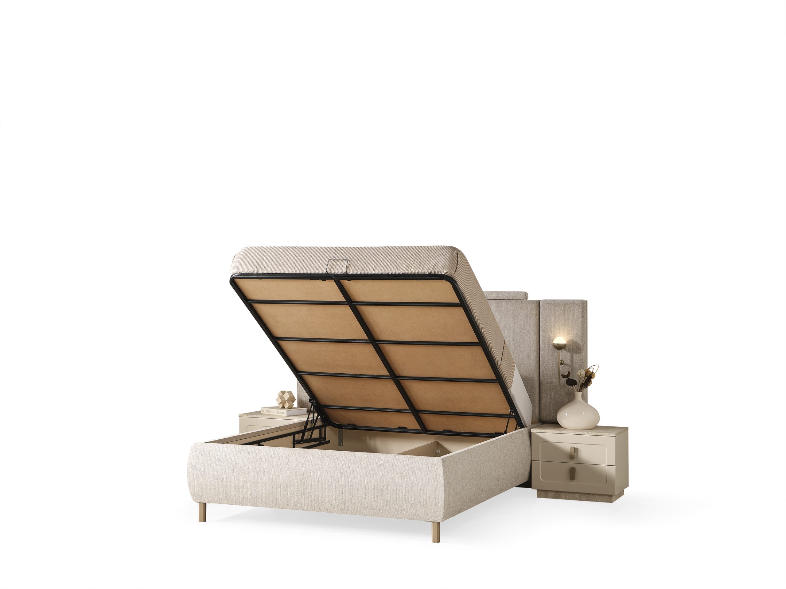 Lina karyola + başlık, modern estetiği ve zarif detaylarıyla karyola + başlık odanıza sofistike bir dokunuş getiriyor. Karyola ve başlık uyumu, odanızda bütünsel bir görünüm yaratırken, rahatlığı ön planda tutan tasarımı sayesinde dinlendirici bir uyku deneyimi sunuyor.