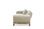 Koltukların genel tasarımı, minimalist bir yaklaşımla şekillendirilmiştir. Özellikle tekli berjerlerde belirgin olan açık renkli ahşap iskelet ve kolçaklar, doğal bir sıcaklık katarken, modern çizgilerle mükemmel bir uyum sergiler. Üçlü ve ikili koltuklarda ise ahşap ayak detayları, tasarıma hafiflik ve zarafet katmaktadır. Koyu yeşil ve bej tonlarındaki döşemelik kumaşlar, görselde silinebilir olduğu belirtilen yüksek kaliteli bir yapıya sahiptir, bu da hem estetik bir görünüm sunar hem de günlük kullanımda kolaylık sağlar. Kumaşın dokusu, oturma deneyimine yumuşaklık ve konfor katarken, aynı zamanda modern bir hava yaratır.