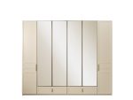 Dolap, krem rengi tonlardaki zarif yüzeyleri ve detaylı işlemeleriyle dikkat çeker. Dört adet dolap kapak ve iki adet yan kapak, dolabın modern ve ferah bir görünüme sahip olmasını sağlar. Ayrıca, alt kısımda yer alan iki adet çekmece, ek depolama alanı sunarak, kişisel eşyalarınız için pratik bir çözüm sunar. Kapaklardaki şık kulplar, dolabın tasarımını tamamlar ve kullanım kolaylığı sağlar.