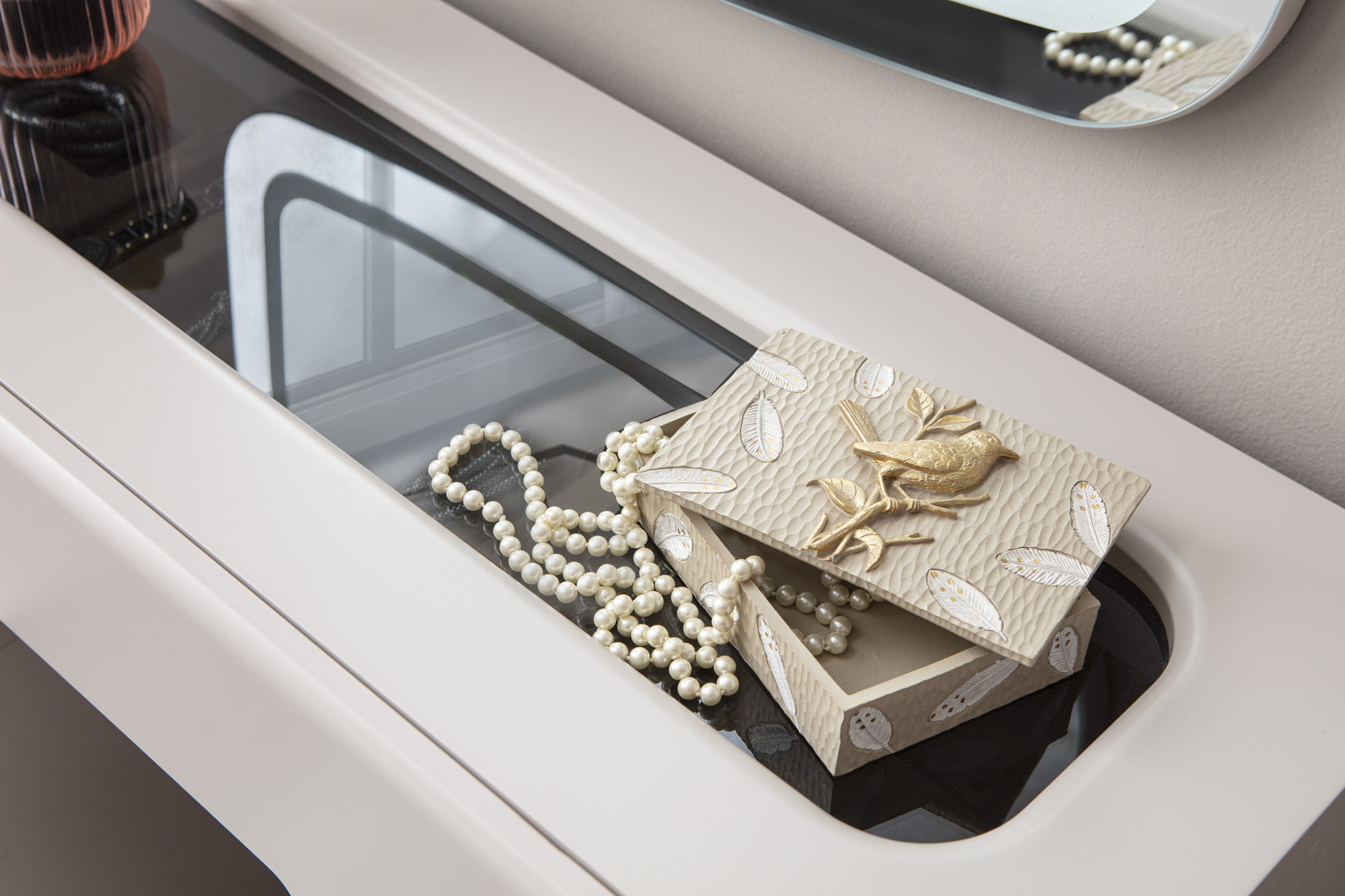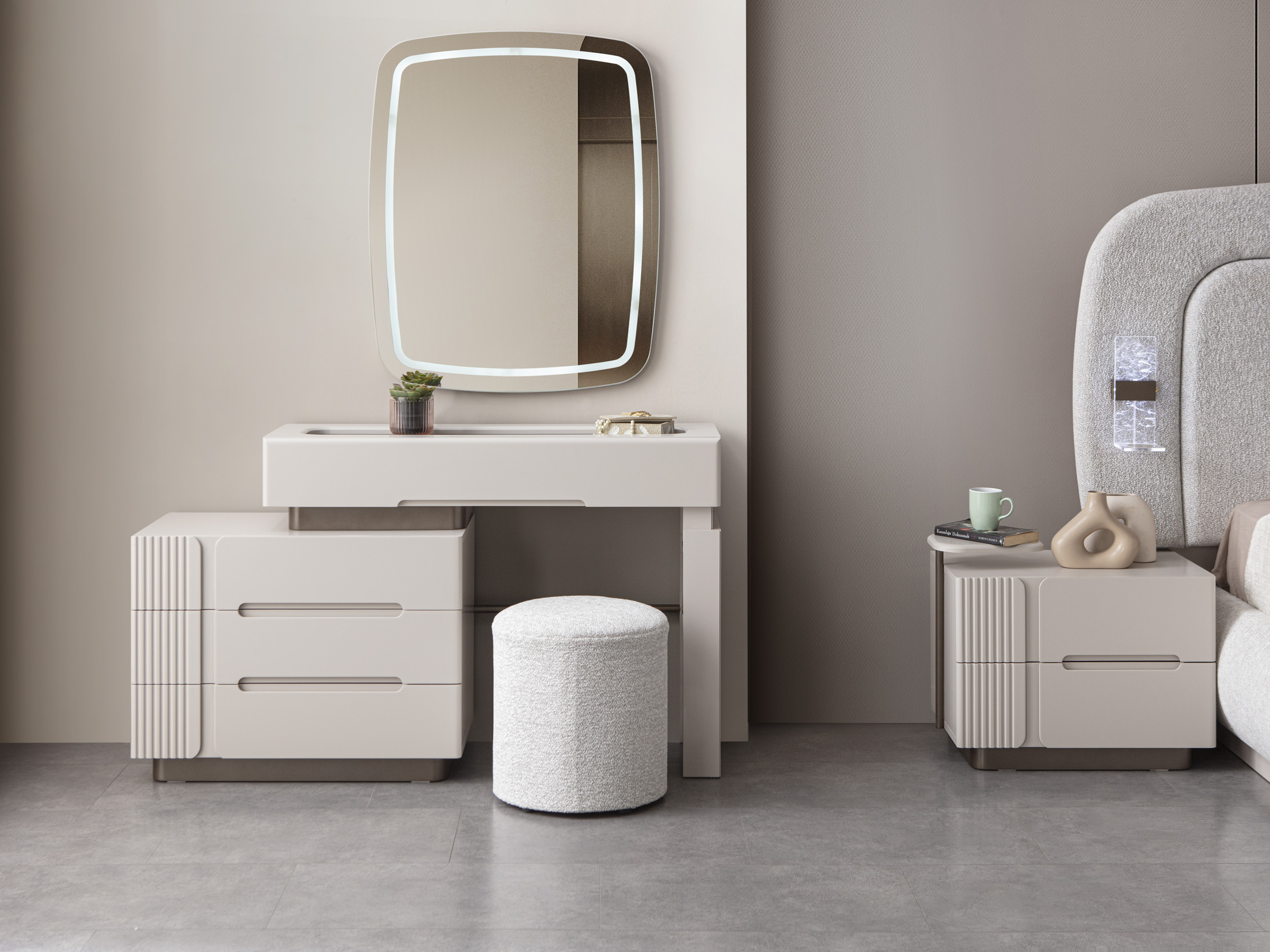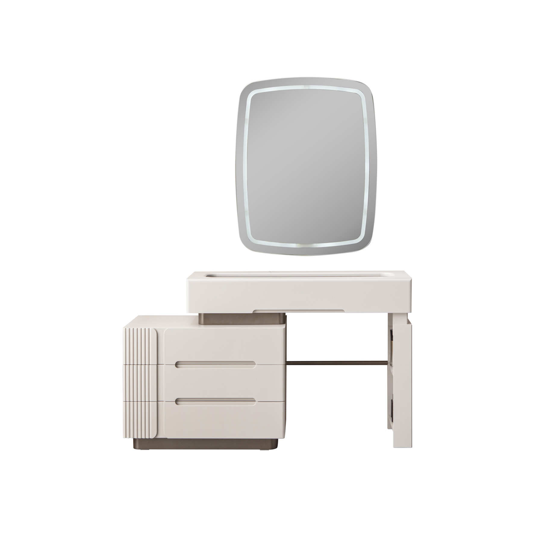 Nova makyaj masası, modern estetiği ve kullanışlı tasarımı ile öne çıkan bir şifonyerli şifonyerdır. şifonyer odanızın atmosferini zenginleştiren bu zarif mobilya, güzellik ve bakım ritüellerinizi daha keyifli hale getirir. Krem tonlarındaki MDF malzeme, masaya sıcak ve davetkar bir görünüm kazandırırken, modern çizgileriyle de çağdaş bir dokunuş sunar. Şifonyer bölümünde yer alan çekmeceler, makyaj malzemelerinizi, takılarınızı ve diğer kişisel eşyalarınızı düzenli bir şekilde saklamanız için geniş depolama alanı sağlar. Çekmecelerin üzerindeki modern detaylar ve dikey çizgiler, masanın genel estetiğini tamamlar. şifonyer yüzeyi, makyaj yaparken veya kişisel bakımınızı gerçekleştirirken size geniş ve rahat bir çalışma alanı sunar. Duvara monte edilmiş, ışıklı dikdörtgen aynası, mükemmel aydınlatma sağlayarak her detayı görmenize yardımcı olur. Nova makyaj masası, şifonyer Odası > Şifonyer kategorisinde yer alan, modern tasarımı ve işlevselliği bir araya getiren ideal bir seçimdir.