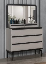 Olympos Genç Odası Şifonyer, modern ve şık tasarımıyla şifonyer odalarına estetik bir dokunuş katıyor. Ahşap malzemeden üretilen bu şifonyer, açık bej veya açık gri tonlarındaki ana gövde rengiyle koyu renkli çerçeve, üst tabla ve çekmece detaylarının uyumlu birlikteliğini sergiliyor. Tasarımındaki yalın çizgiler ve köşeleri yumuşatan yuvarlak hatlar, ürüne çağdaş bir görünüm kazandırıyor.