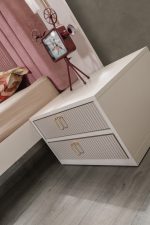 Öykü Genç Odası Komidin, genç odalarının vazgeçilmez tamamlayıcısı olarak modern ve şık bir depolama alanı sunar. Açık renklerin hakim olduğu düz ve minimalist hatlara sahip tasarımıyla ferah bir atmosfer yaratırken, iki adet geniş çekmecesi ile kişisel eşyalarınızı düzenli bir şekilde saklamanıza olanak tanır. Çekmecelerin ön yüzeylerinde yer alan zarif çizgili doku detayı, komidine sofistike bir hava katarken, altın rengi, kavisli kulplar modern estetiği tamamlar. Yüksek kaliteli ahşap malzemeden üretilen bu komidin, dayanıklılığı ve uzun ömürlü kullanımı garanti eder. Genç odalarına özel olarak tasarlanmış olup, hem fonksiyonellik hem de stil açısından beklentileri fazlasıyla karşılar.