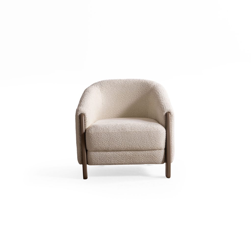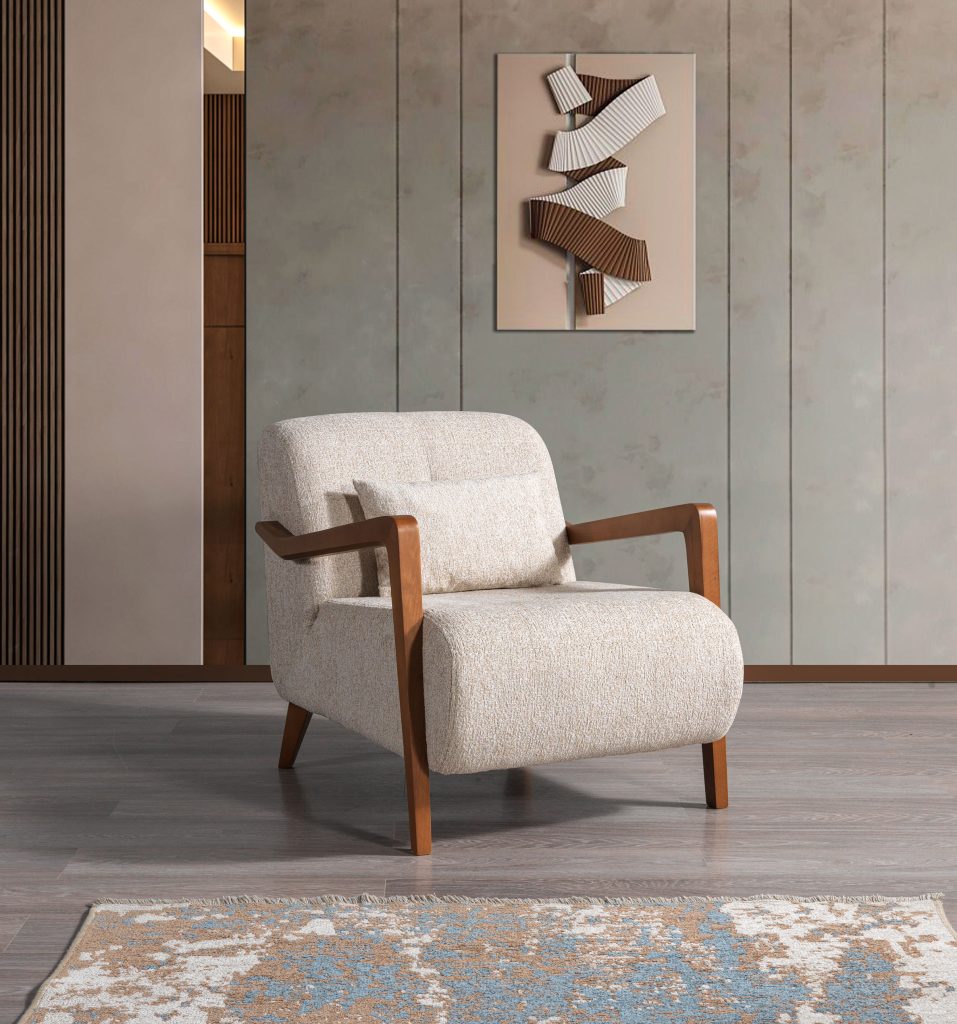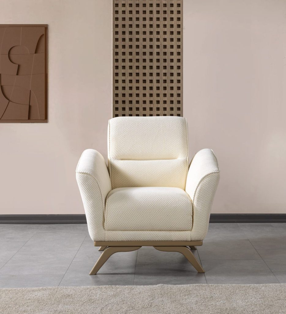 Rio Berjer, modern çizgilerin estetikle buluştuğu eşsiz bir tasarıma sahiptir. Yüksek sırt yapısı ve ergonomik hatlara sahip, zarifçe kavisli kolçakları ile kullanıcısına tam bir konfor sunarken, yaşam alanlarınıza sofistike bir dokunuş katar. Açık renk tonlarındaki kaliteli silinebilir kumaş döşemesi, berjerin zarif görünümünü tamamlarken, kolay temizlenebilir özelliği ile pratik bir kullanım sunar. Berjerin altında yer alan doğal ahşap görünümlü, özgün tasarımlı ve hafifçe dışa doğru açılı duran ayaklar, ürüne modern ve sıcak bir hava katarken, sağlam yapısıyla uzun ömürlü bir kullanım vaat eder. Oturma Grupları kategorisinde öne çıkan Rio Berjer, minimalist ve çağdaş stil anlayışını benimseyen her türlü iç mekanda, özellikle oturma odaları, çalışma odaları veya berjer odalarında şık bir köşe oluşturmak için mükemmel bir seçimdir. Estetik duruşu ve rahatlığıyla Rio Berjer, evinizin en gözde köşesi olmaya adaydır.