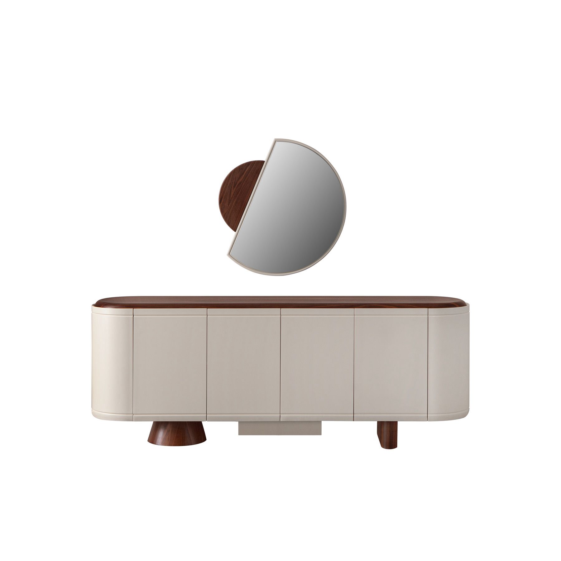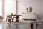 Yemek odası takımının tamamlayıcı parçası olan yemek odası takımı, yuvarlatılmış köşeleri ve minimalist ön panelleriyle mekâna ferah bir görünüm kazandırır. Konsolun üst yüzeyindeki ahşap detay, masanın ahşap tonlarıyla uyum içinde olup, takımın bütünlüğünü pekiştirir. Geniş depolama alanları sayesinde yemek odası eşyalarınızı düzenli bir şekilde saklamanıza olanak tanır. Konsolun üzerindeki asimetrik tasarımlı yemek odası takımı ise mekana derinlik katarak sanatsal bir dokunuş sunar.