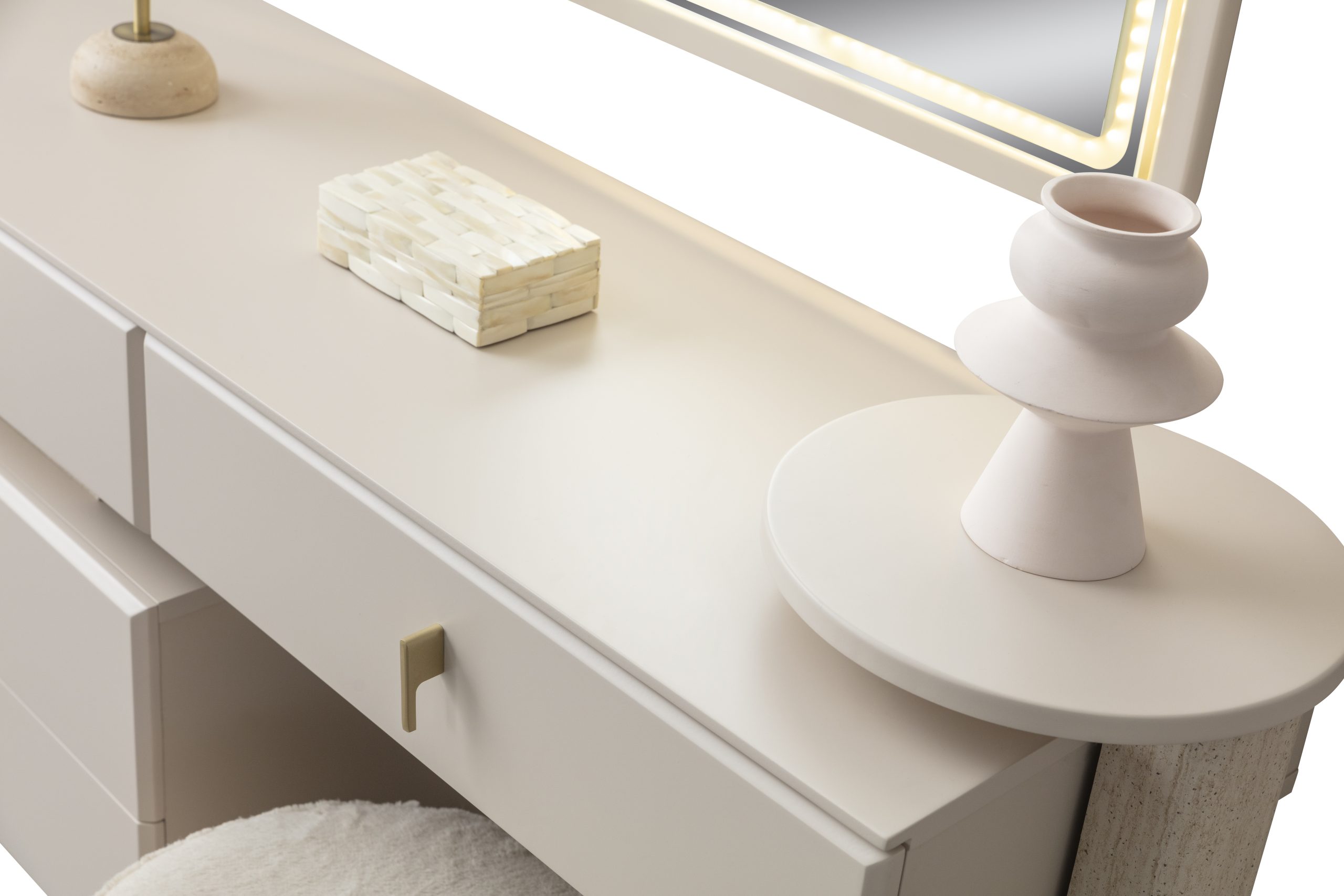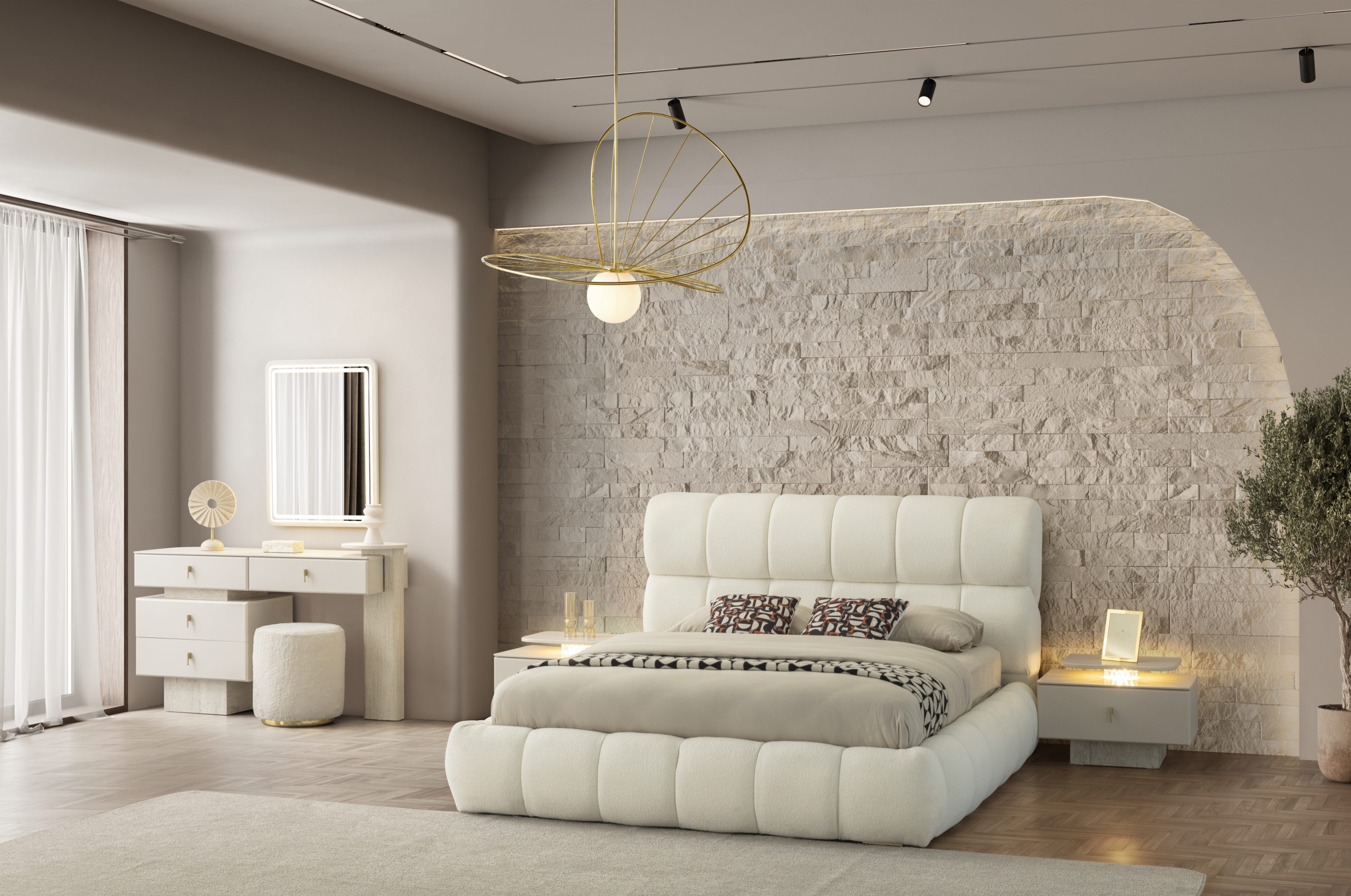 Tetra Yatak Odası Takımı, yüksek kaliteli MDF malzemesinden üretilmiştir. Takımın içeriğinde bir adet karyola ve başlığı, geniş depolama alanına sahip dolap, şifonyer ve iki adet komodin bulunmaktadır. Karyola, yatak odanızın odak noktası olacak şekilde tasarlanmıştır. Dolap, eşyalarınızı düzenli bir şekilde saklamanız için idealdir. Şifonyer ise kişisel bakım ürünlerinizi ve aksesuarlarınızı koyabileceğiniz kullanışlı bir alandır. Komodinler, yatağınızın yanında kitaplarınızı ve diğer eşyalarınızı bulundurabileceğiniz pratik çözümler sunar. Ölçüleri hakkında daha fazla bilgi için lütfen bizimle iletişime geçin.