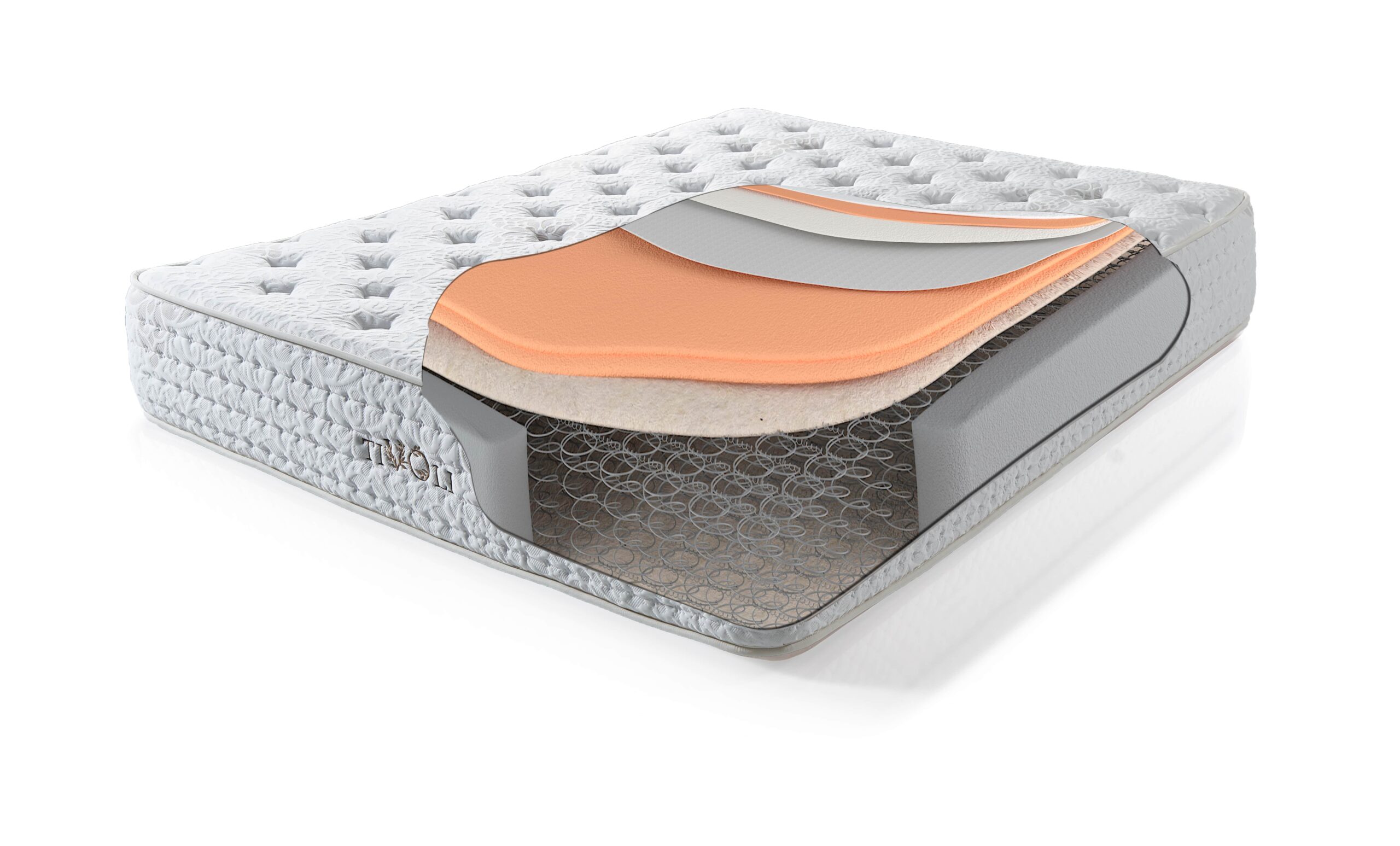 Tivoli yatak, tasarımında kullanılan yüksek yoğunluktaki üst katmanı, yüksek mukavemetli yaylardan oluşan taşıyıcı sistemi ile uyku kalitesini arttırırken, yatağın yıllarca deforme olmadan kullanılmasını sağlar. Özel olarak kapitone edilmiş pamuklu örme kumaşı, sürekli hava sirkülasyonu sağlayarak bakteri oluşumunu önler.