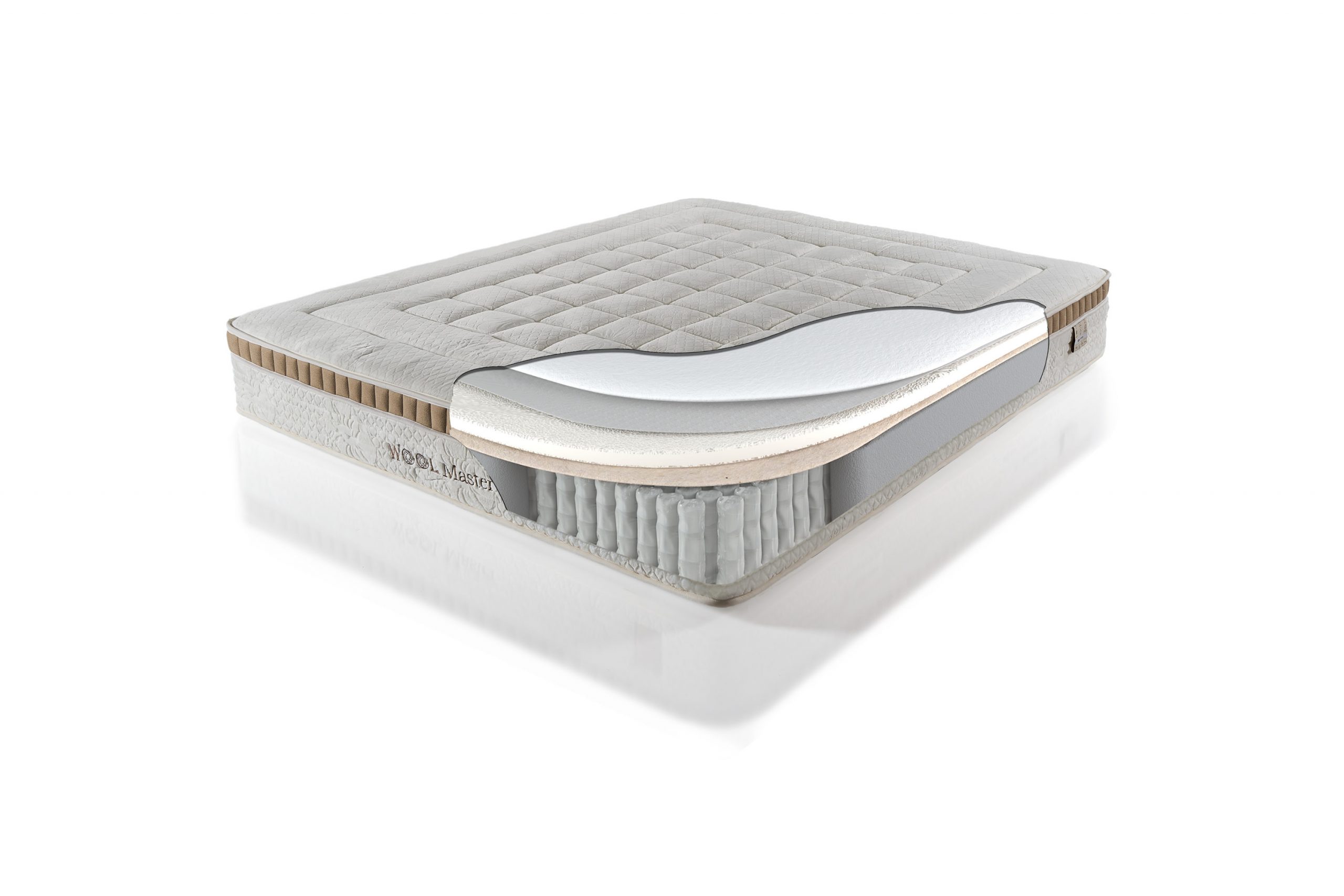 Woolmaster’ da kullanılan %100 doğal, saf yün katmanının lifli yapısında bulunan hava kanalları sayesinde yatak nefes alırken, doğal klima etkisi vücut ısısını dengeler. Yazlık ve kışlık olarak, çift taraflı kullanım özelliği ile değişen mevsim koşullarına uygun uyku deneyimi sağlar. Farklı sertlikteki yayların dizilimiyle oluşturulan 5 bölgeli paket yay sistemi, vücudun beş farklı bölgesine özel destek verir. Çift çekirdek özelliği, eşler arasındaki kilo farklılıklarına çözüm sunar.