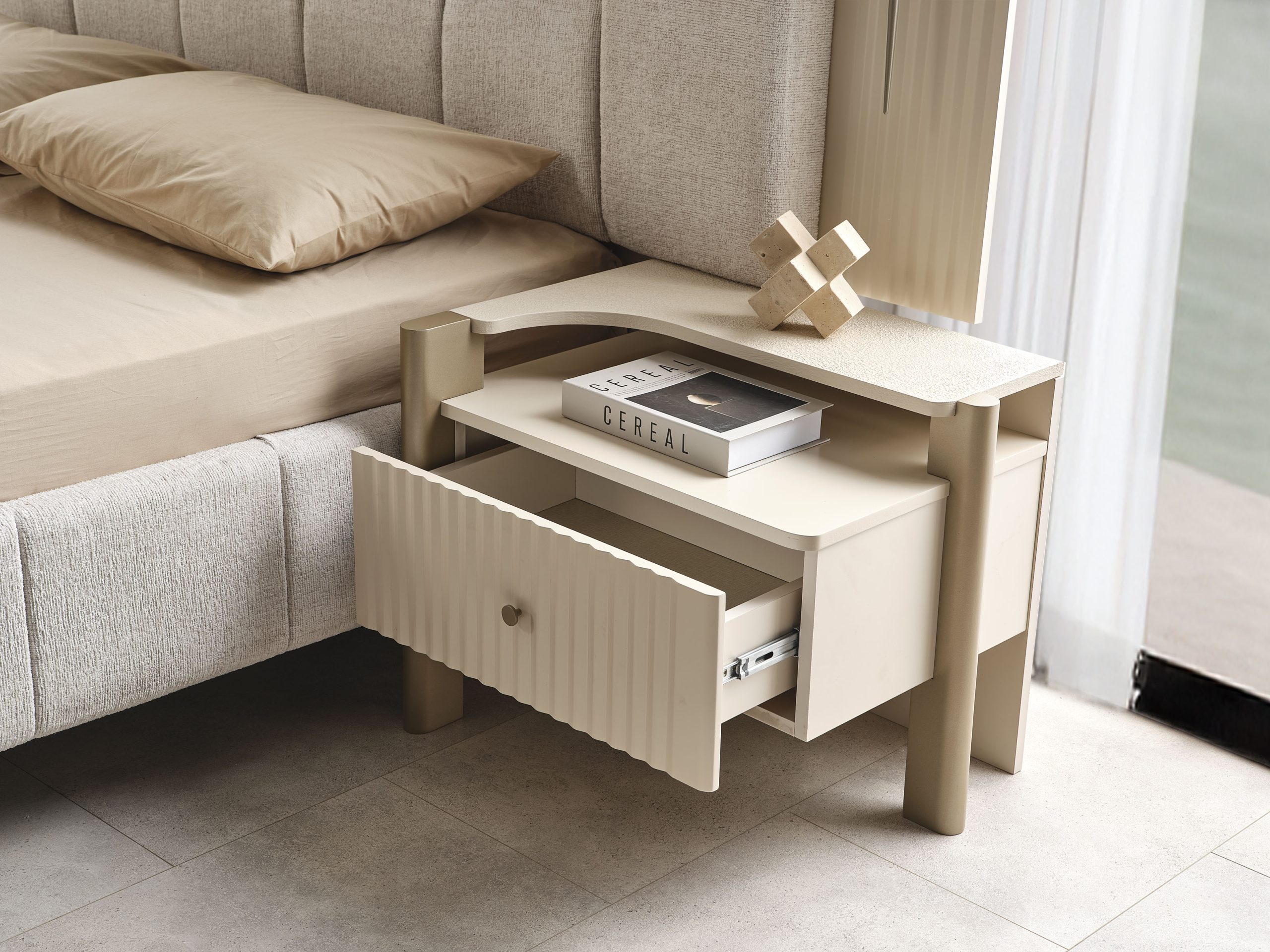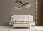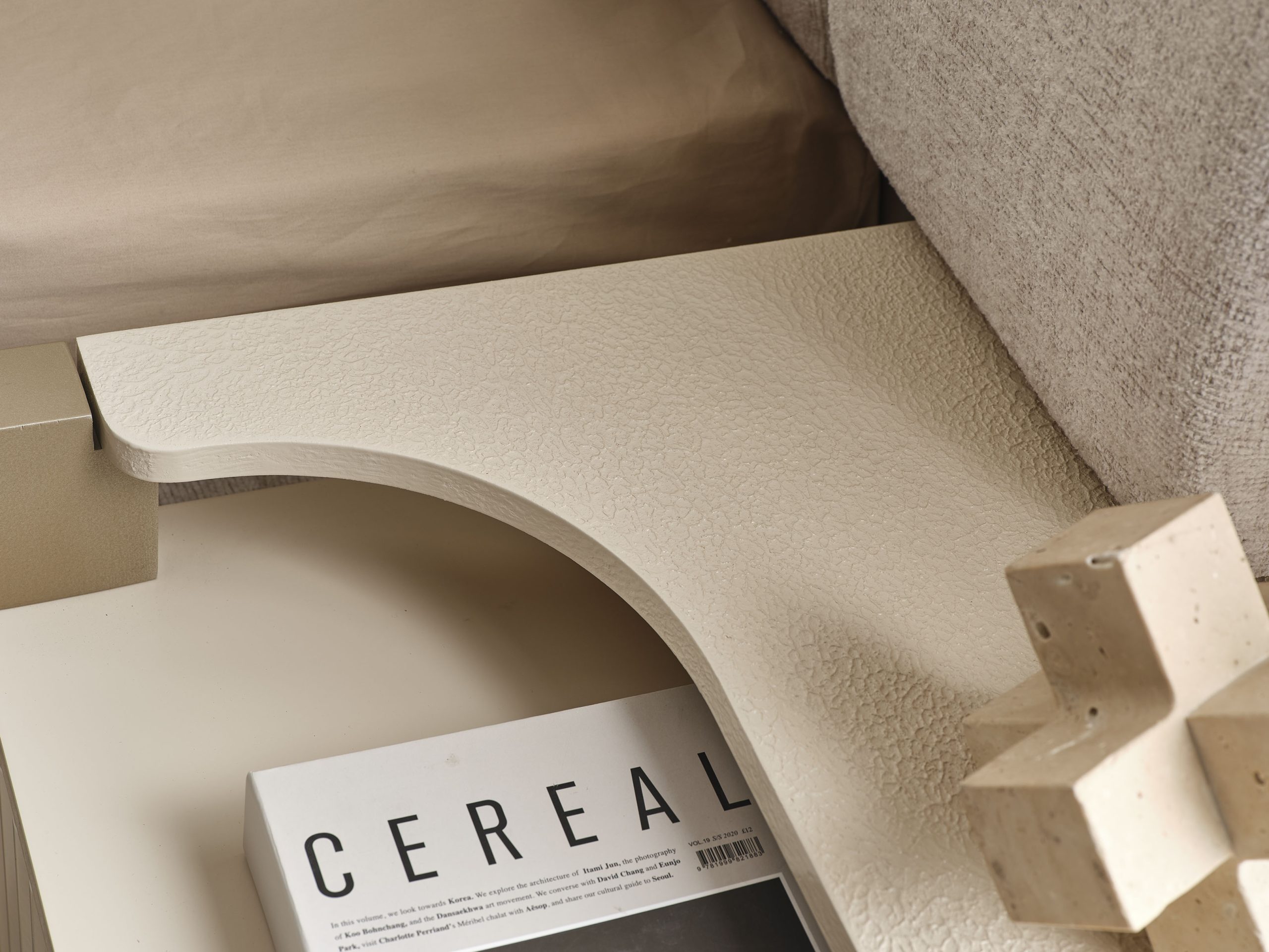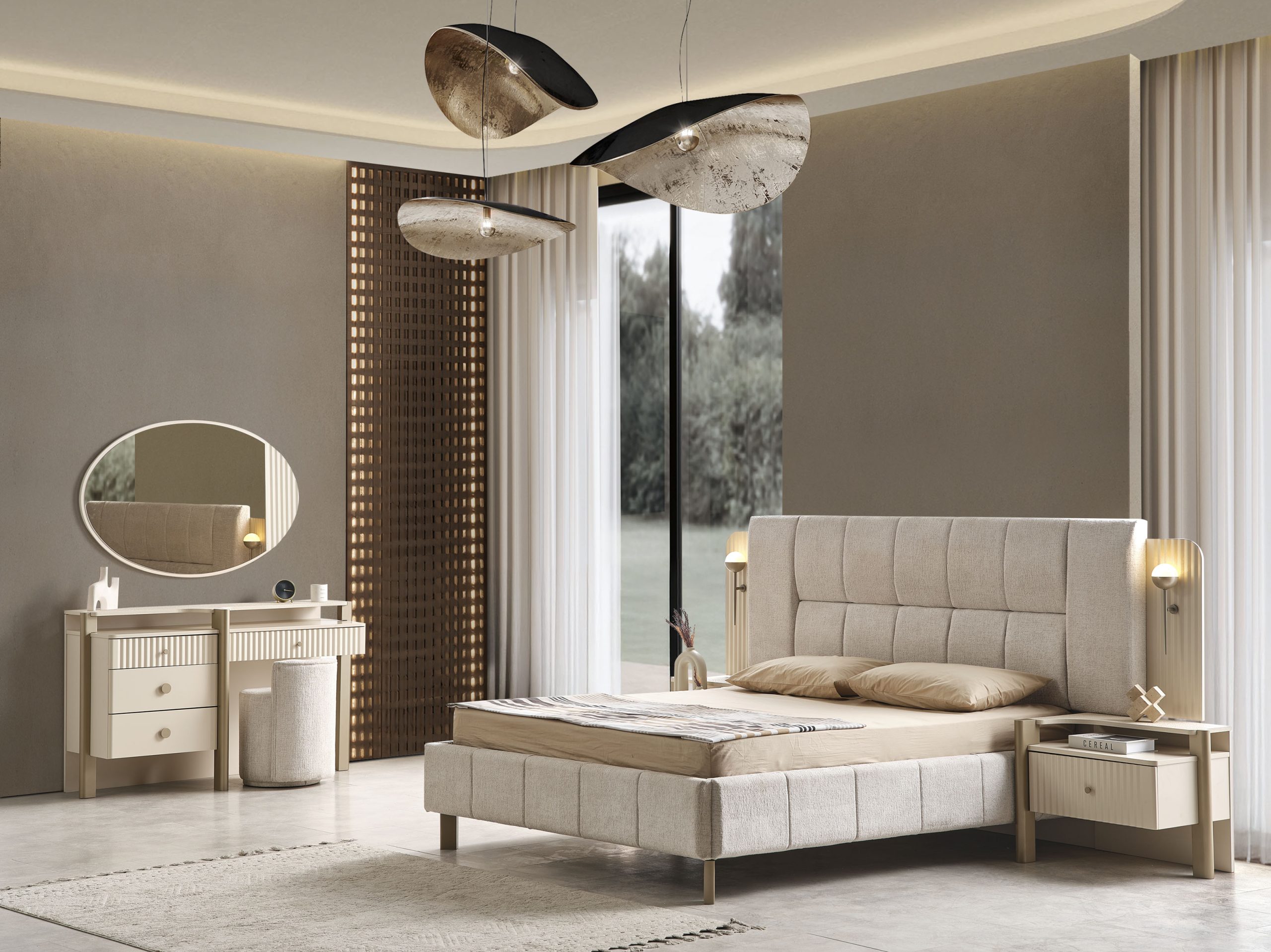Zirve Yatak Odası Takımı, modern tasarım anlayışıyla yatak odalarına sofistike bir hava katmak üzere tasarlandı. Takım, zarif çizgileri ve dikkat çekici detaylarıyla görsel bir şölen sunuyor. Krem rengi tonları, ahşap detaylarla birleşerek sıcak ve davetkar bir atmosfer yaratıyor.